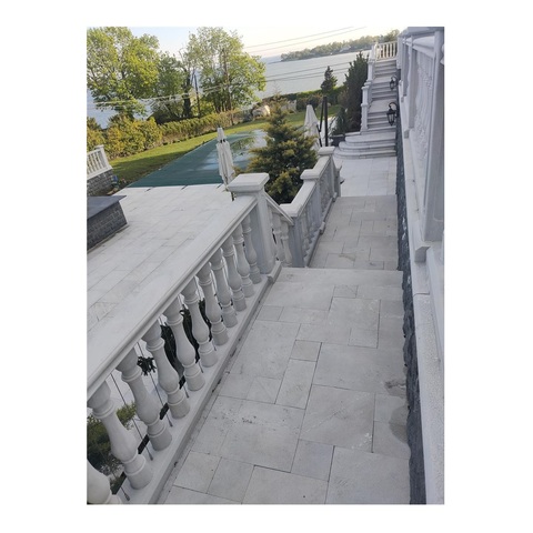 บ้านวิลล่าระเบียงราวบันไดการออกแบบสีขาวหยกหินอ่อนลูกกรงและเสาหินคอลัมน์สำหรับตกแต่งอาคาร